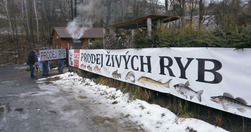 FOTOGALERIE: Prodej ryb pro štědrovečerní večeři v Pstruhařství v Tovární ulici u bývalého Šumavanu