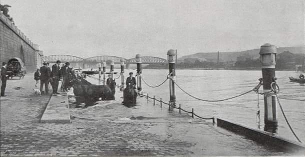 Myčka na koně na náplavce Rašínova nábřeží ve 20.letech