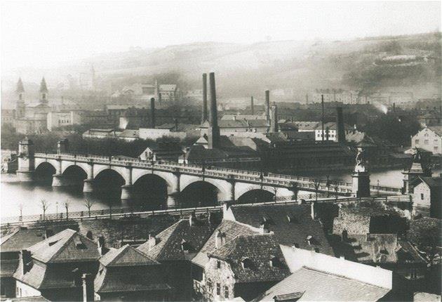 Pohled z Podskalí na Smíchov je po více než sto letech k nepoznání. Takhle to vypadalo v 90. letech 19. století po vystavění Palackého mostu.