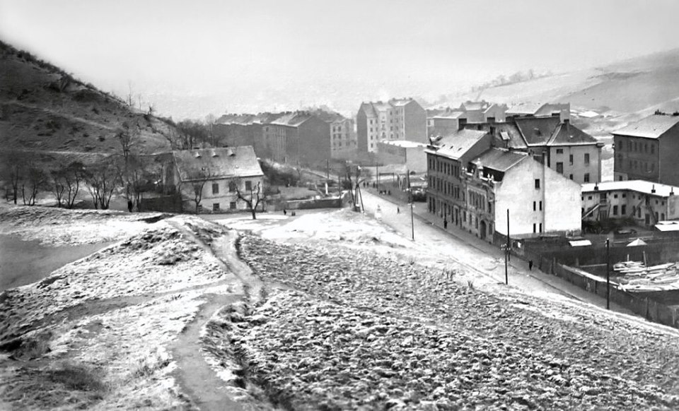 Smíchov. Pohled na Radlickou ulici a křižovatku s kapličkou sv. Anny, 1906.