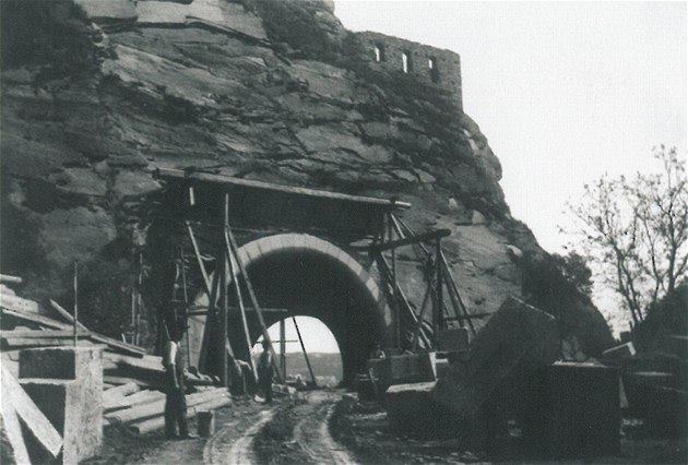 Stavba Vyšehradského tunelu, fotografie pochází zřejmě z roku 1903.