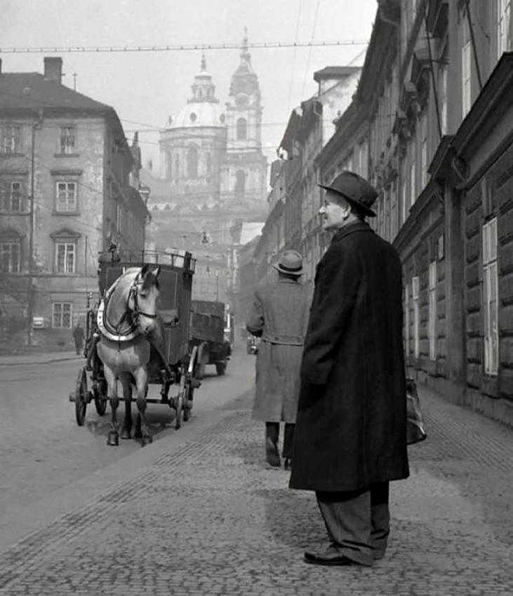 Praha - poštovní vůz v Karmelitské ulici 1959