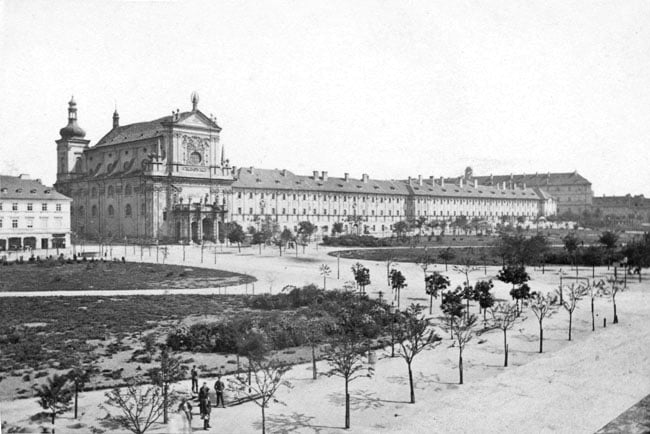 Praha, Karlovo náměstí, Kostel sv. Ignáce a nemocnice v roce 1867