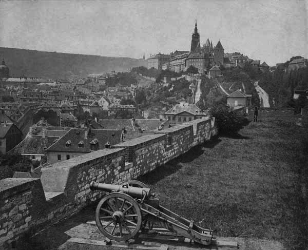 Praha, Mariánská bašta a dělo, které ohlašovalo poledne, rok 1870