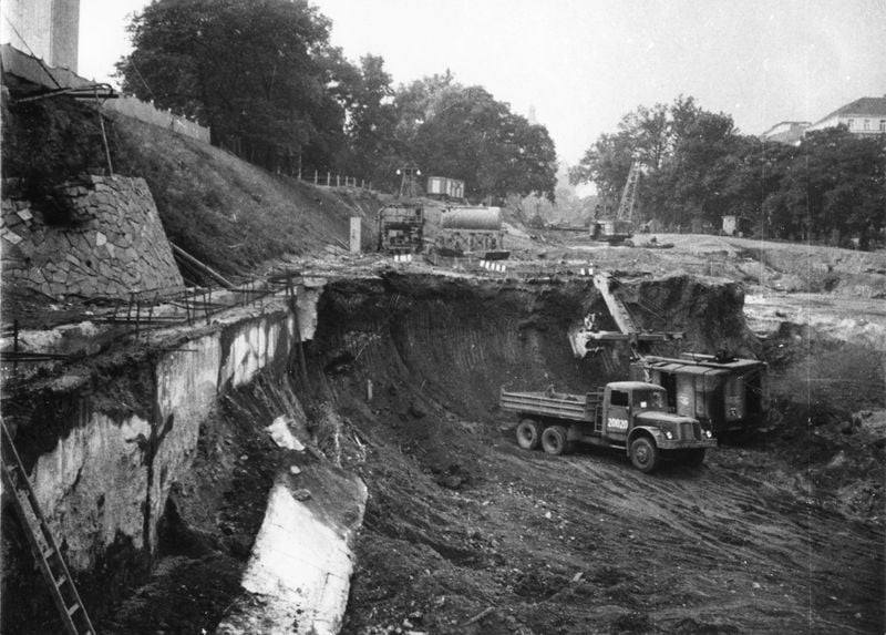 Staveniště stanice Hlavní nádraží 12. června 1967. V té době se stále ještě stavěla stanice podpovrchové tramvaje.