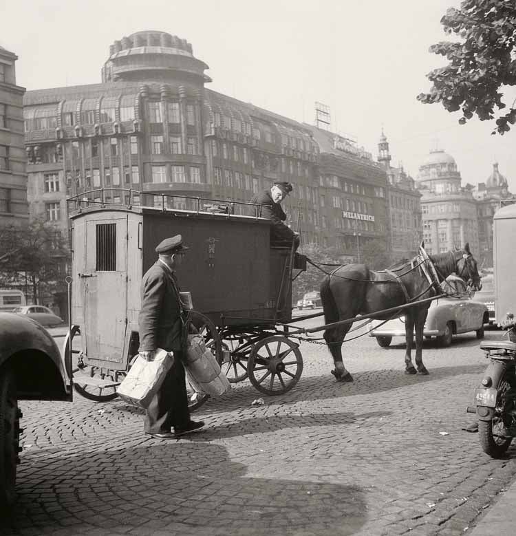 Poštovní vůz na Václavském náměstí, 1957