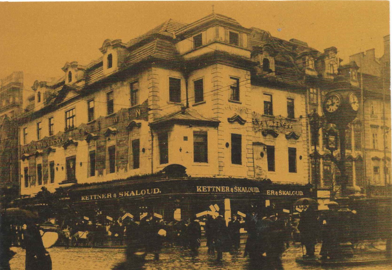 Dům u Špinků kolem roku 1910, v letech 1911 až 1914 nahrazen novostavbou paláce Koruna.