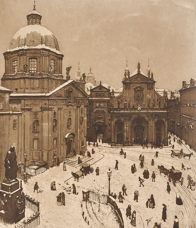 Křižovnické náměstí v zimě.