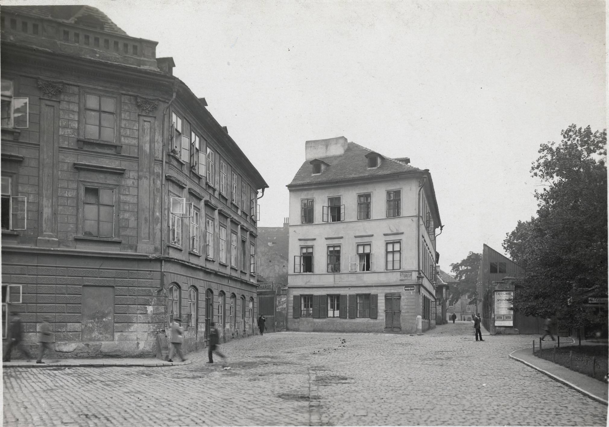 Poslední legální nevěstinec v Praze stál do roku 1922 na Františku – dům ve středu fotografie.