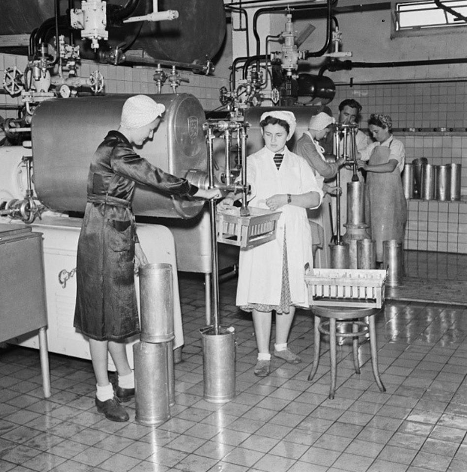 Výroba mraženého smetanového krému Polárka, Pražské mlékárny, 60. léta