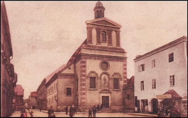 Bývalý biskupský seminář s kostelem sv. Anny na pohlednici z roku 1915.