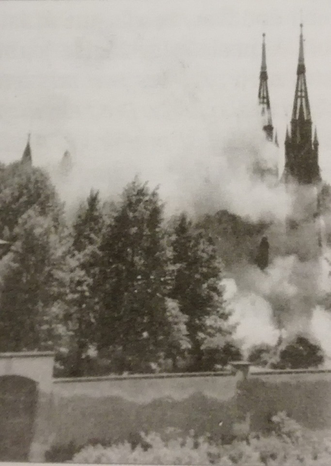 Vzácná fotografie odstřelu českobudějovické synagogy pátého července 1942.