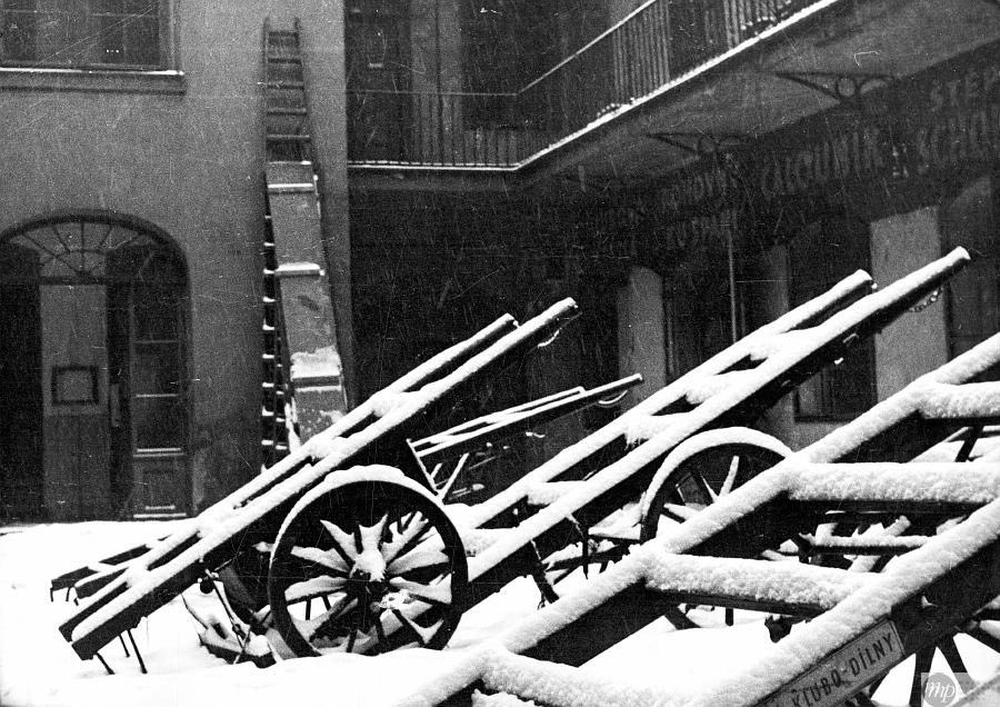 Pravá pražská zima ve dvoře na Starém Městě. Třicátá léta.