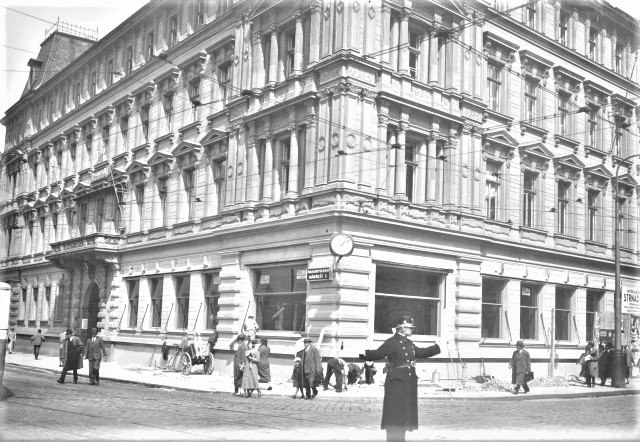 Křižovatka u Národního divadla,kavárna Slavia,roh Masarykova nábřeží a Národní třídy 20-30leta.