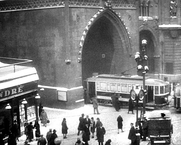 Prašná brána a jí projíždějící tramvaj v roce 1930