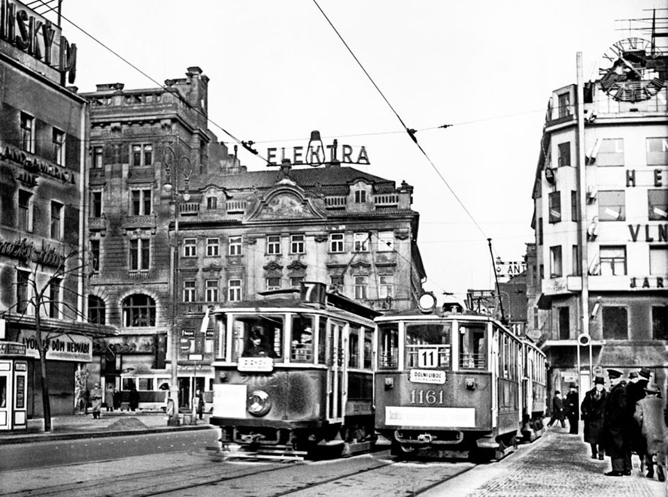 Václavské náměstí, Můstek, tramvaj, v roce 1939