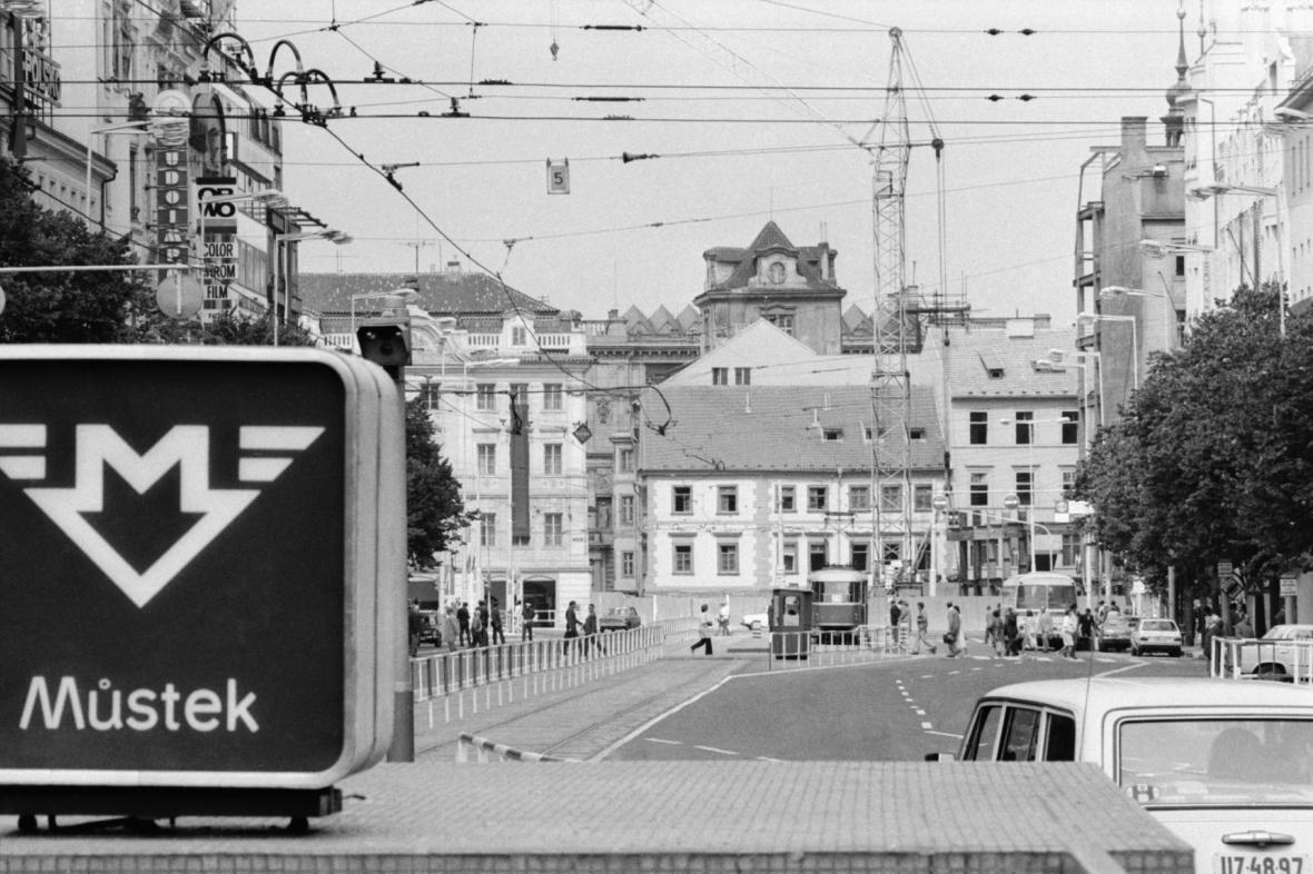 Václavské náměstí,pohled směrem k Můstku