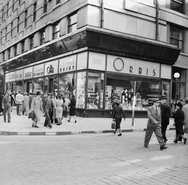 Knihkupectví Orbis na rohu Štěpánské ulice roku 1941