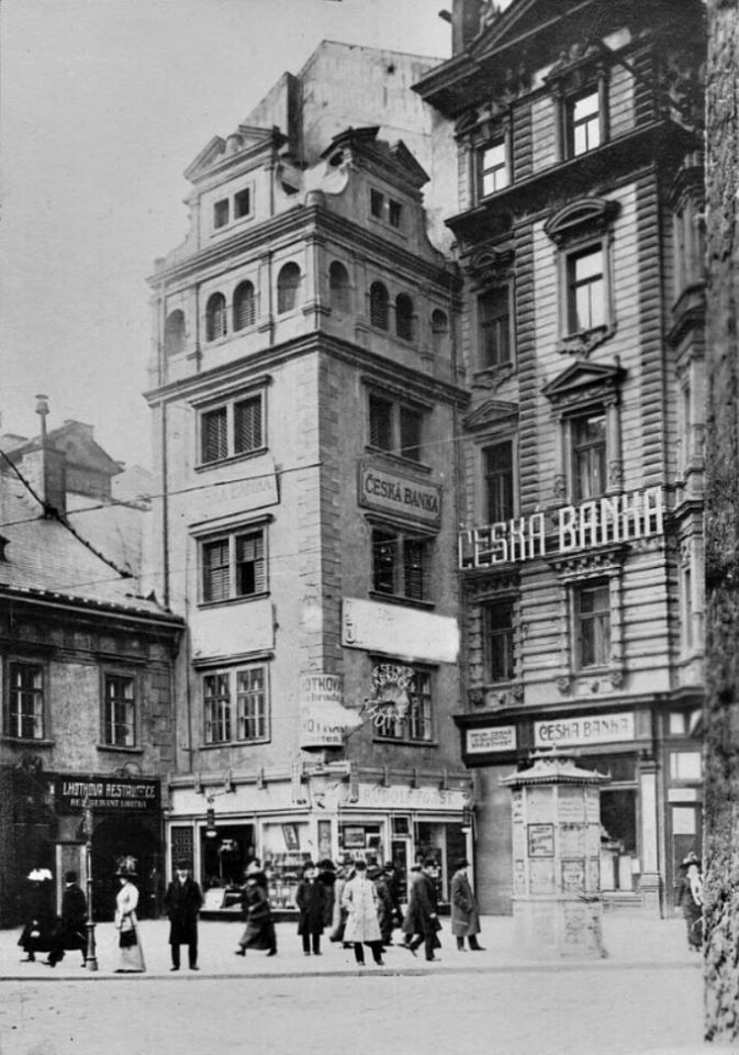Roh Vodičkovy ulice a Václavského náměstí v roce 1910.