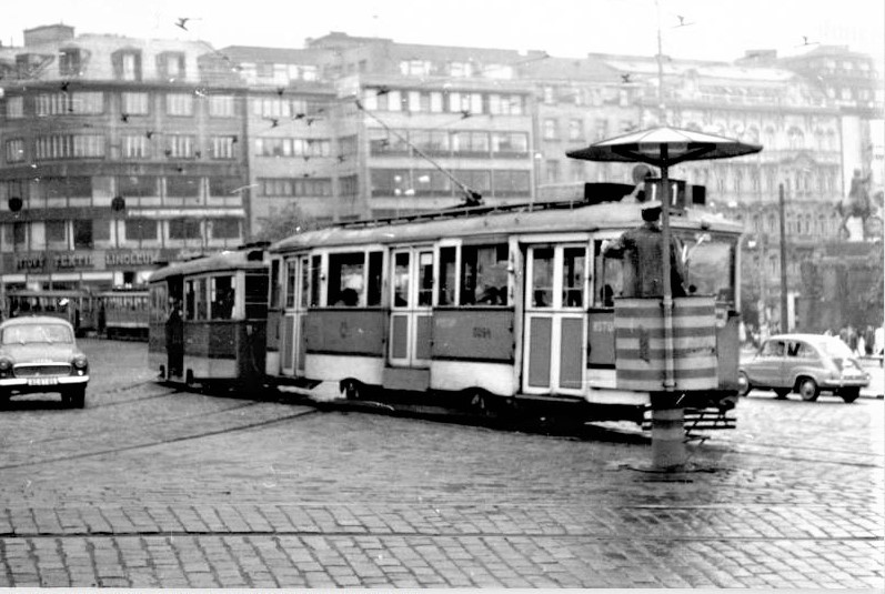 Křižovatka u Národního muzea,vlevo Vinohradská ulice 60-léta
