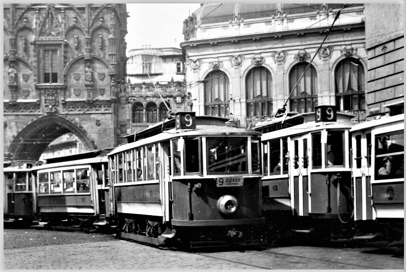 Křižovatka u Prašné brány,pohled z Hybernské ulice, 1956