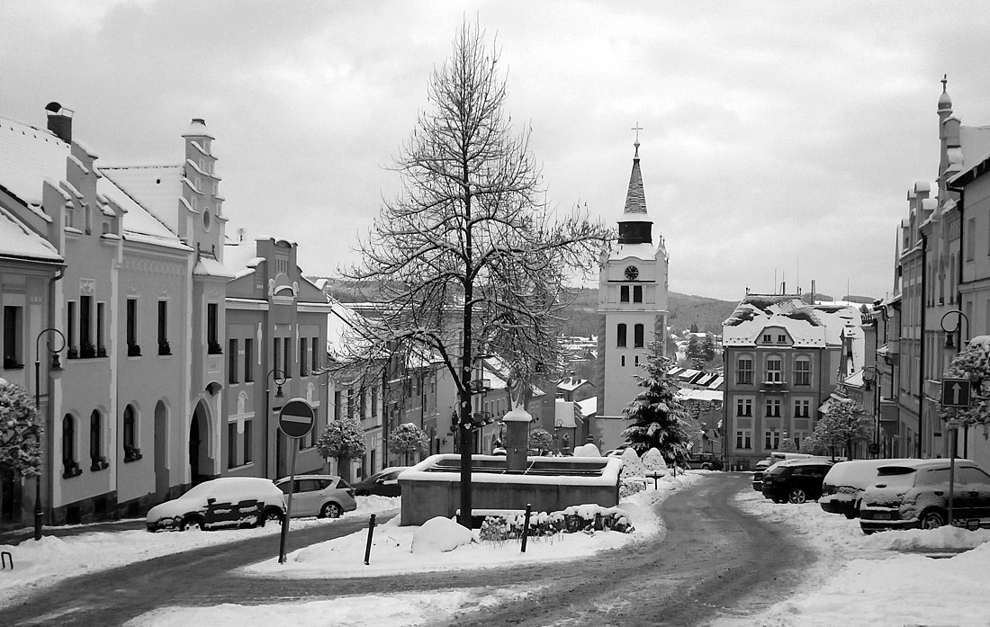 TO JE NAŠE MĚSTO: Vimperk – lednový den pod tmavými mraky, proto černobíle