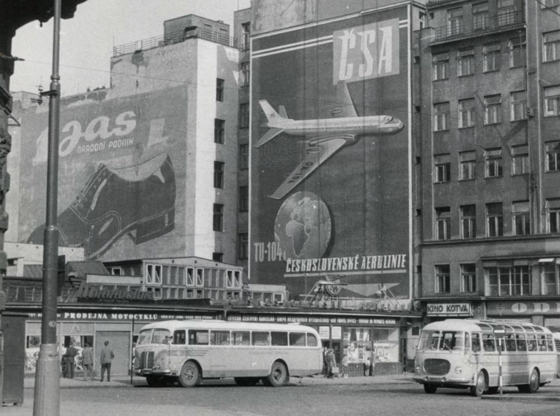 Než vyrostla Kotva, byly tu nízké krámky, 1955,