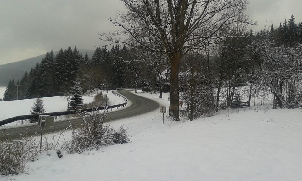 OBRAZEM: Zasněžená krajina na Vimpersku – okolí Arnoštky a silnice do Strážného