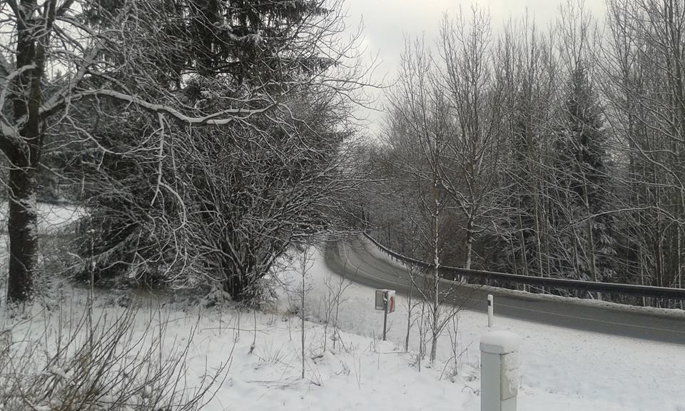OBRAZEM: Zasněžená krajina na Vimpersku – okolí Arnoštky a silnice do Strážného