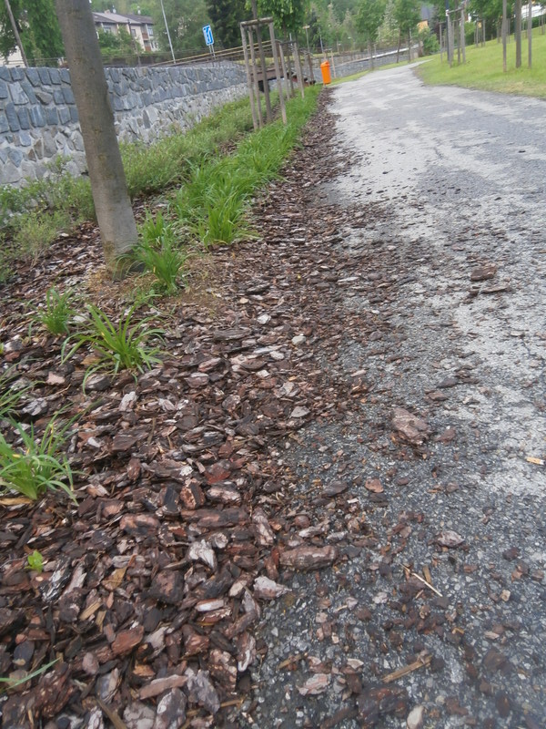 VŠÍMAVÝ OBJEKTIV: Stačí, aby trochu více zapršelo, a mulčovací kůry ze záhonu v parku je hned plný chodník
