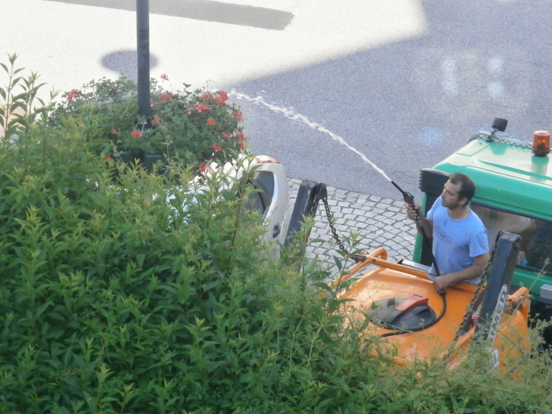 VŠÍMAVÝ OBJEKTIV: Vydatná zálivka květinových mís na lampách veřejného osvětlení v ulicích Vimperka