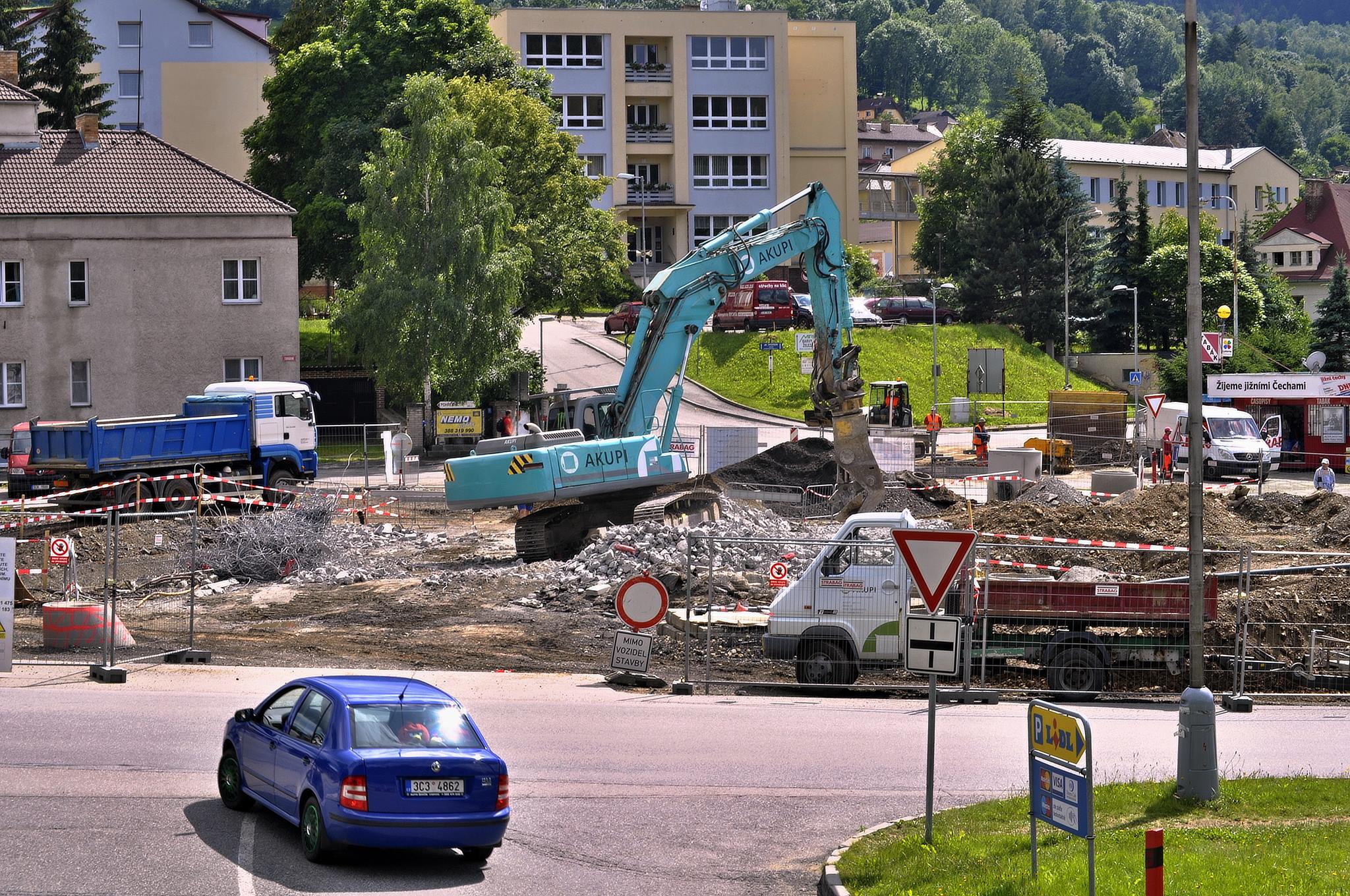 OBRAZEM: Souběžně s demolicí mostu se pustili stavbaři také do výkopů kanalizace v Nádražní ulici