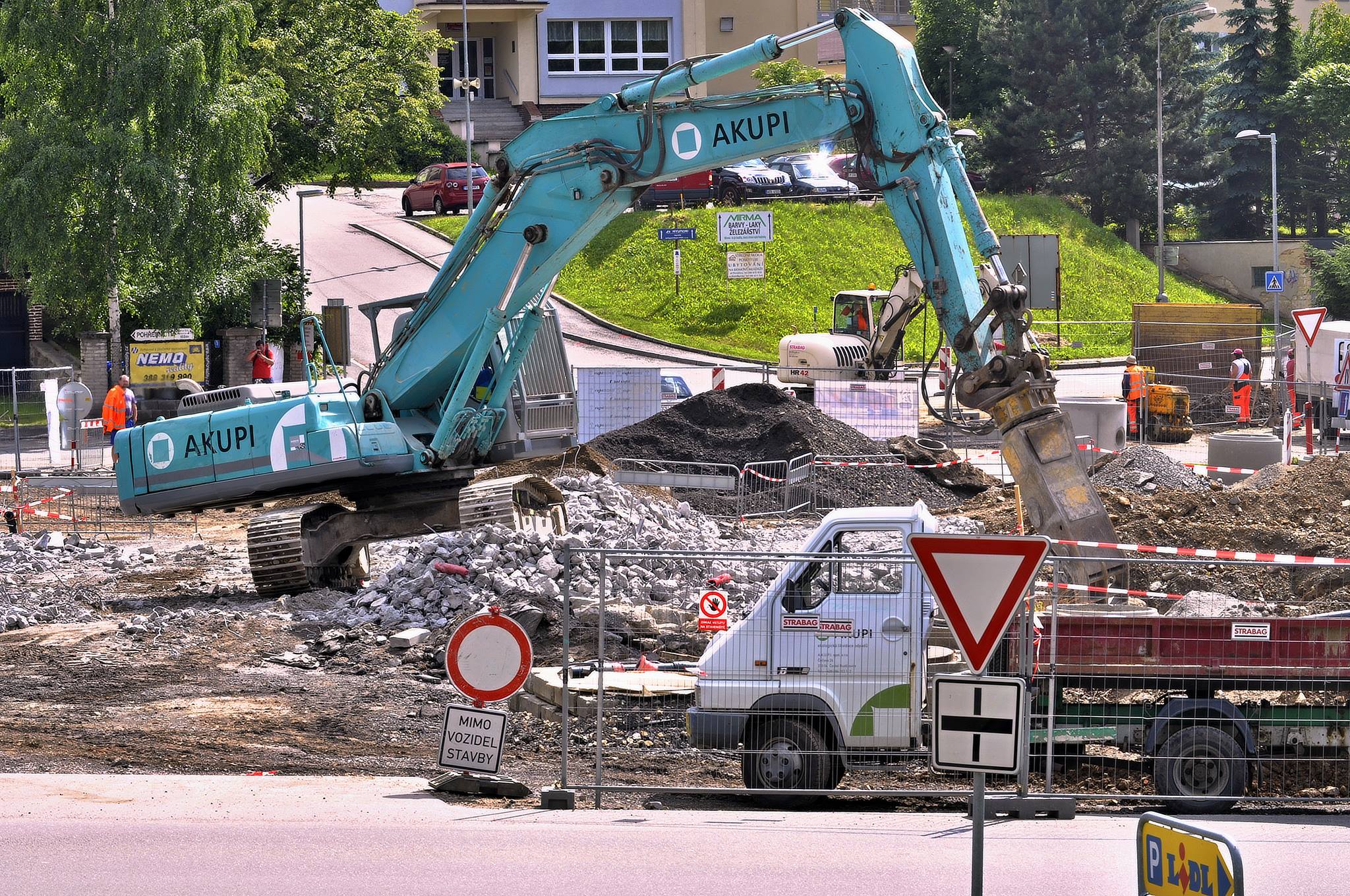 OBRAZEM: Souběžně s demolicí mostu se pustili stavbaři také do výkopů kanalizace v Nádražní ulici