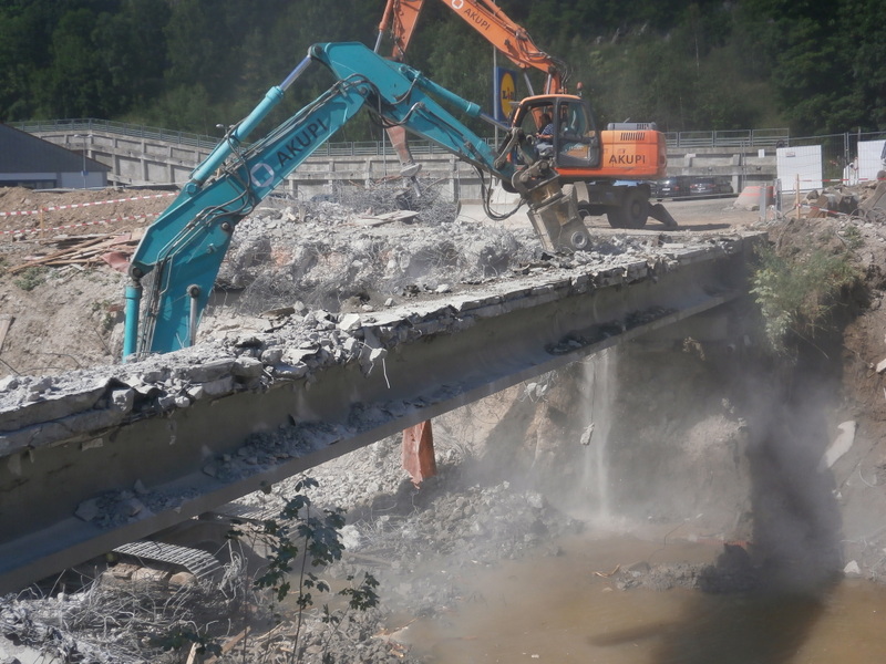 OBRAZEM: Demolice mostu přes Pravětínský potok, den třetí. Ve čtvrtek dopoledne by mělo být už dokonáno