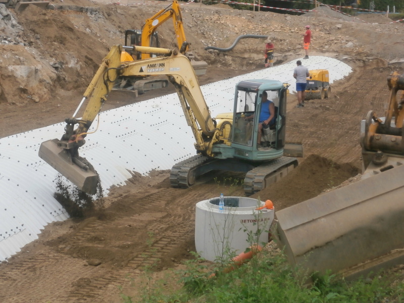 OKRUŽNÍ KŘIŽOVATKA: Práce pokročily. Stavbaři zasypávají tubus pro koryto Pravětínského potoka