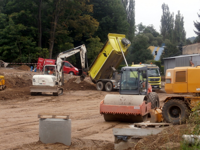 OKRUŽNÍ KŘIŽOVATKA: Středeční práce narušil jen silný déšť. Do konce týdne chtějí stavbaři jámu zasypat