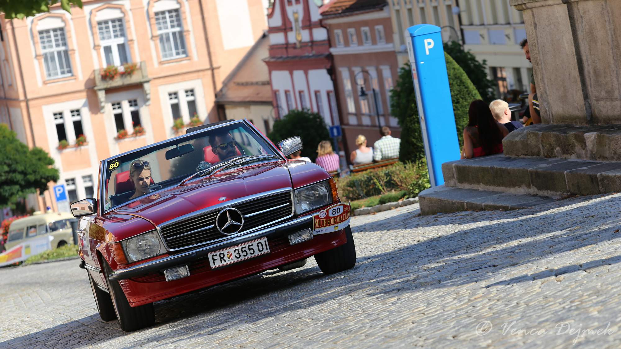 OBRAZEM Z VÍKENDU: Účastníci setinové rallye klasických a sportovních vozů projeli Vimperkem