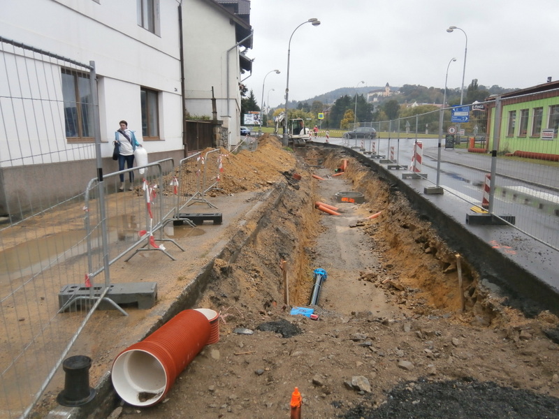 OKRUŽNÍ KŘIŽOVATKA: Další frézování a výkopy. Auta jezdí částí nového díla, kde už to podmínky dovolují