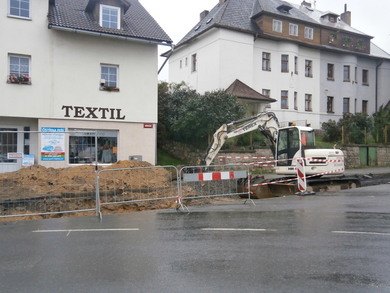 OKRUŽNÍ KŘIŽOVATKA: Další frézování a výkopy. Auta jezdí částí nového díla, kde už to podmínky dovolují