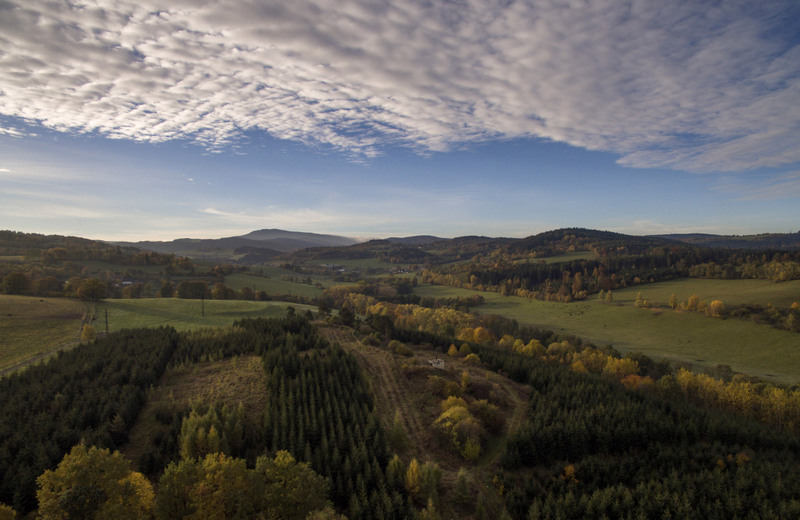 OD NAŠICH ČTENÁŘŮ: Čtyři snímky z nadhledu – Bohumilice a pohled na Boubín. Foto Ondřej Doležal