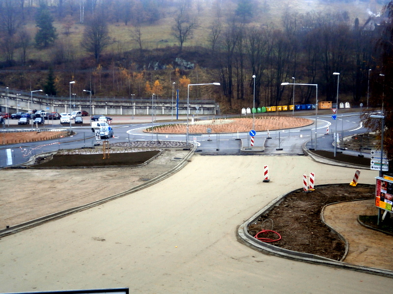 OKRUŽNÍ KŘIŽOVATKA: Práce postupují k Nádražní ulici, ta stále není průjezdná a je navíc i obtížně průchozí