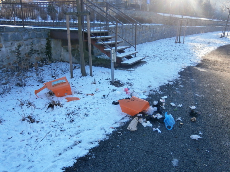 PO SILVESTROVSKÉ NOCI: Dva zcela zničené odpadkové koše a jejich obsah rozmetaný po okolí