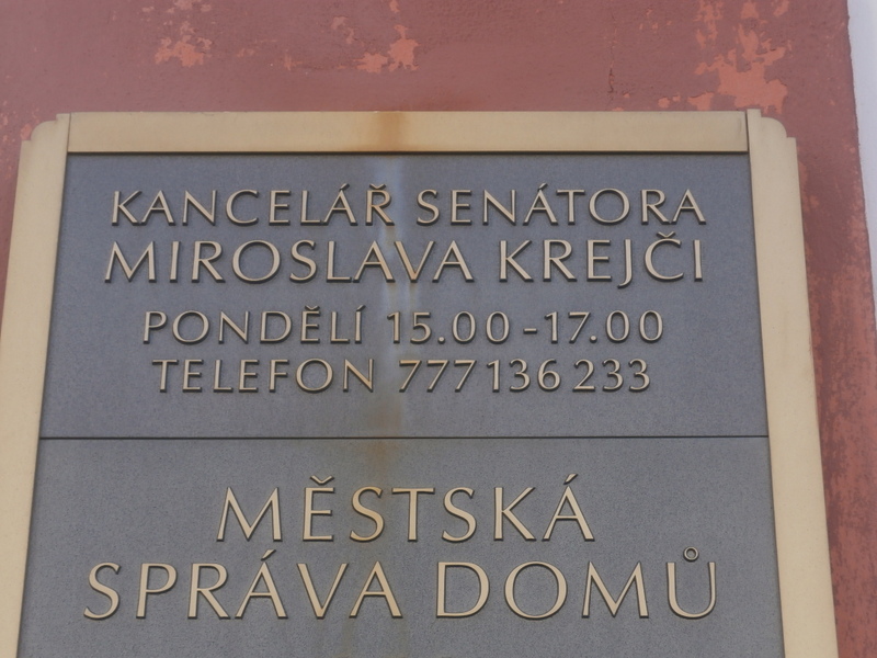 FOTOGLOSA: Dávno už není Miroslav Krejča senátorem, leč vývěska na domě stále zve lidi do jeho kanceláře