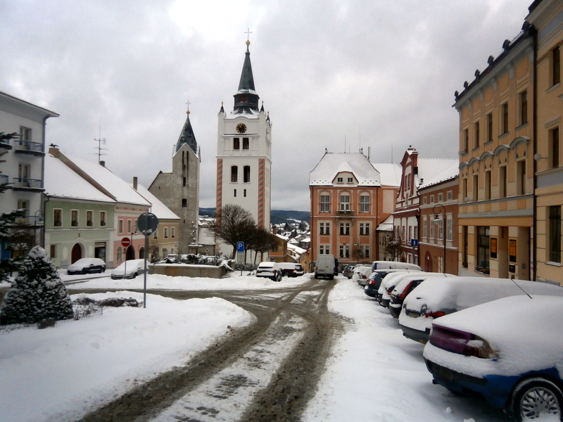 FOTOGALERIE: Vimperk pod sněhovou pokrývkou aneb Čtvrteční dopoledne nejen v ulicích starého města