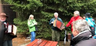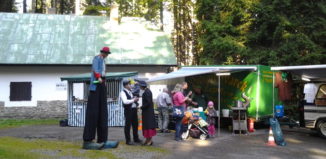 Stánek s občerstvením funguje, harmonikáři hrají, dospělí, děti a psi chodí v hojném počtu. Přijďte také pobejt k rozhledně na Javorníku.