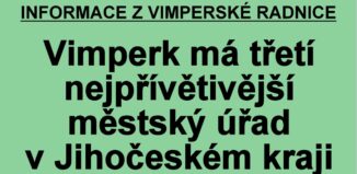 Vimperský městský úřad uspěl v letošním ročníku soutěže Přívětivý úřad pořádané Ministerstvem vnitra ČR. To ho ocenilo jako 3. nejlepší v Jihočeském kraji mezi...