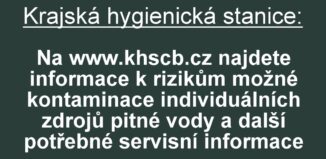 Občané mají již od středečního večera na našem webu www.khscb.cz potřebné informace k rizikům kolem kontaminace individuálních zdrojů pitné vody a další servisní informace.