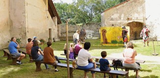 Nedělní šerm na třetím nádvoří vimperského zámku. Náš zpravodaj k tomu poznamenal: "Moc hezké vystoupení skupiny historického šermu REGO. Lidí přišlo, že bych to...