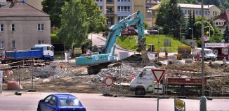 Součástí výstavby okružní křižovatky ve Vimperku je také položení nové kanalizace v Nádražní ulici. Tam už se také stavbaři pustili do výkopů.