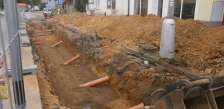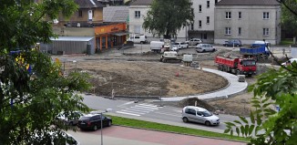 Výstavba okružní křižovatky u vimperského autobusového nádraží. Sobotní snímky z těsné blízkosti staveniště zachycují Sklářskou ulici, kde je nyní doprava řízena semafory a kde...